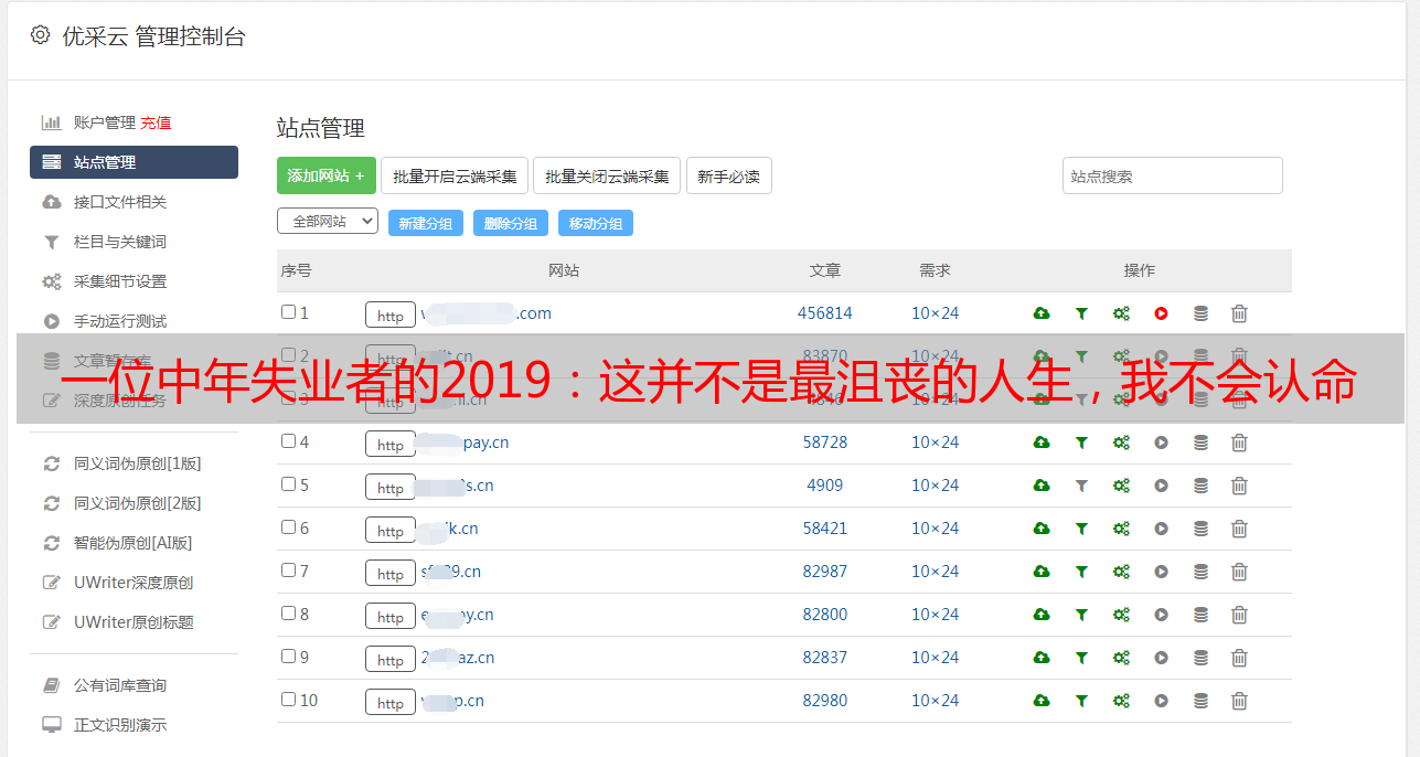 优采云 发布时间: 2020-01-02 16:00过去一年,互联网经历裁员潮,一位36岁的游戏企业员工年初离职,失业八个月。他让费用压缩至一周30块、尝试开滴滴、在找工作频频受挫的过程中经历去中年危机。职业瓶颈还培养了感情中巨大的性别压力,他跟丈夫的关系也一度走去了解体的边缘。