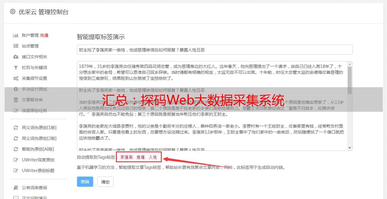 优采云 发布时间: 2020-10-12 10:20探索代码Web大数据采集系统
