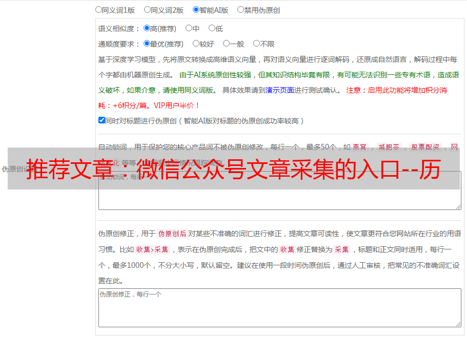 微信公众号文章采集输入-历史新闻页面的详细说明