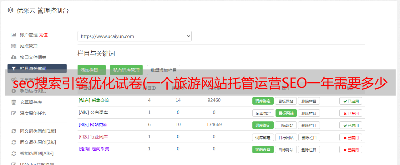 优采云 发布时间: 2021-10-16 03:20seo搜索引擎优化试卷(一个旅游网站托管运营SEO一年需要多少钱?思?)