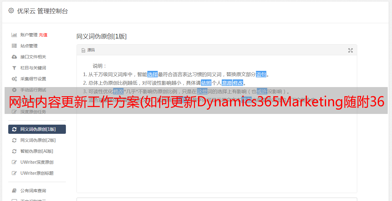 优采云 发布时间: 2021-10-16 05:27网站内容更新工作方案(如何更新Dynamics365Marketing随附365及Marketing的解决方案365)