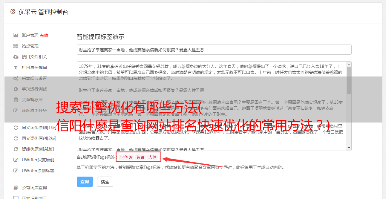 如何评价网站的质量?事实上,这非常简单。以电影和电视为例。例如,网站 被称为电影网站。在他的采集中,我们可以随意找到一页。信阳网站优化。站点名称添加网站 名称。如果之前的搜索结果中有这个站点,那么这个站点的权重是正常的,质量是高的。