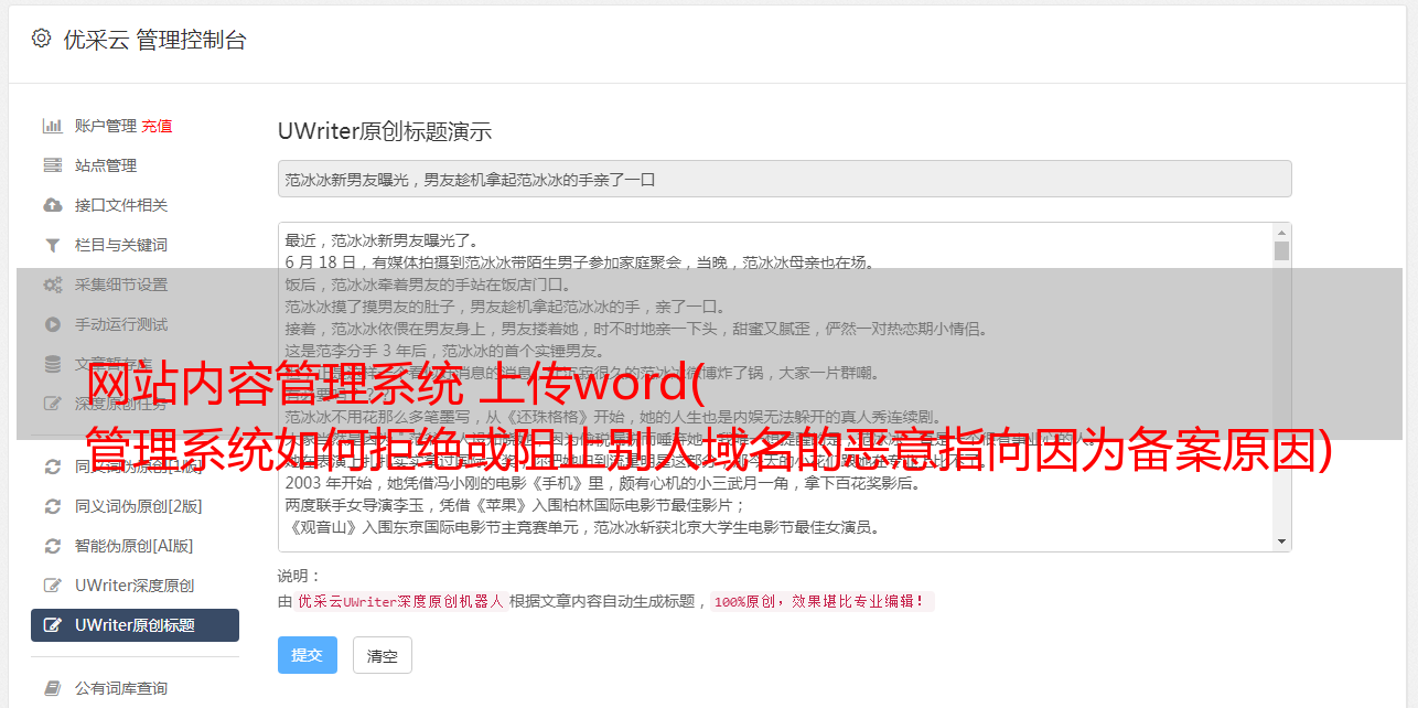 网站内容管理系统 上传word( 管理系统如何拒绝或阻止别人域名的恶意指向因为备案原因)