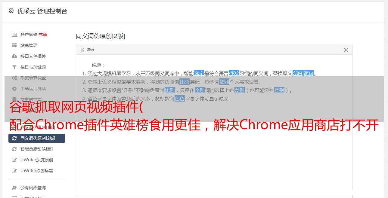 优采云 发布时间: 2021-10-16 21:07谷歌抓取网页视频插件(
