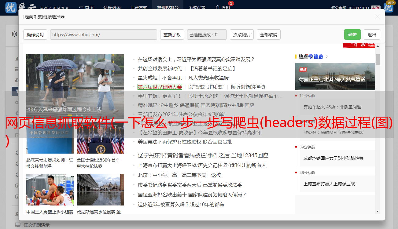 优采云 发布时间: 2021-10-16 22:15网页信息抓取软件(一下怎么一步一步写爬虫(headers)数据过程(图)