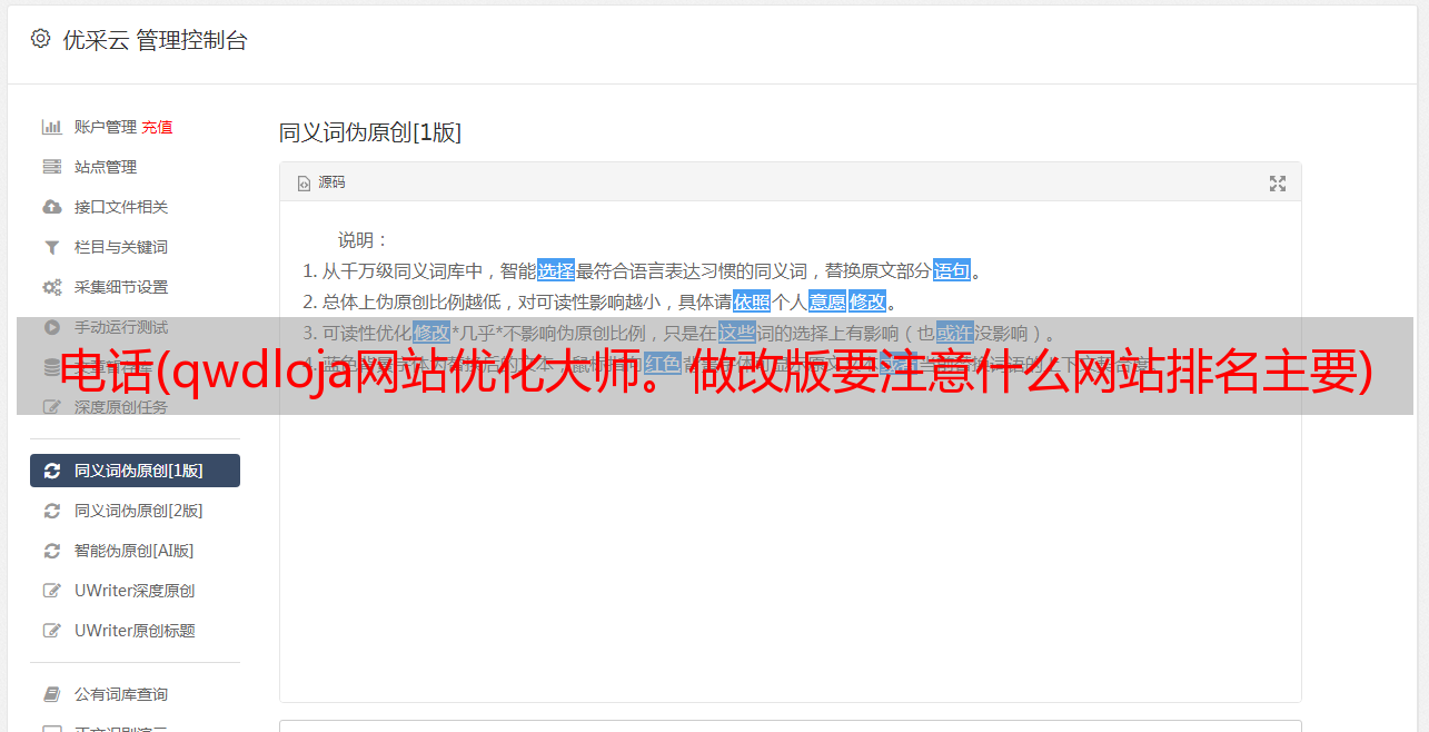 优采云 发布时间: 2021-10-17 00:11电话(qwdloja网站优化大师。做改版要注意什么网站排名主要)