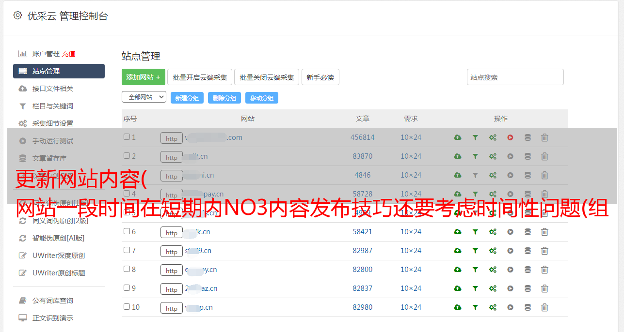 优采云 发布时间: 2021-10-17 19:00更新网站内容(
