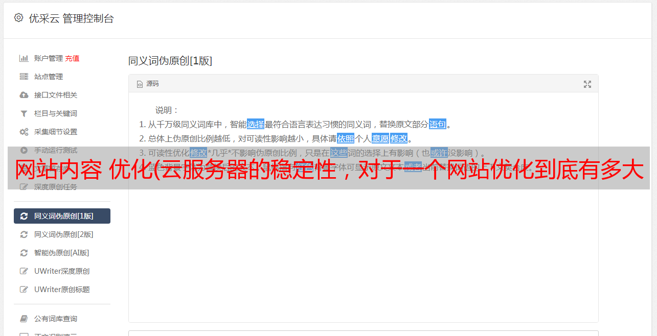 优采云 发布时间: 2021-10-18 10:24网站内容 优化(云服务器的稳定性,对于一个网站优化到底有多大的影响?)