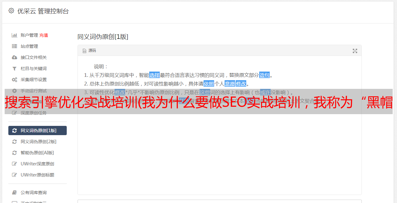 优采云 发布时间: 2021-10-18 18:12搜索引擎优化实战培训(我为什么要做SEO实战培训,我称为“黑帽SEO培训”)