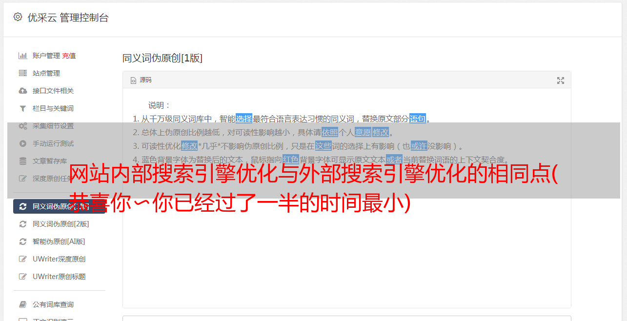 优采云 发布时间: 2021-10-19 07:09网站内部搜索引擎优化与外部搜索引擎优化的相同点(