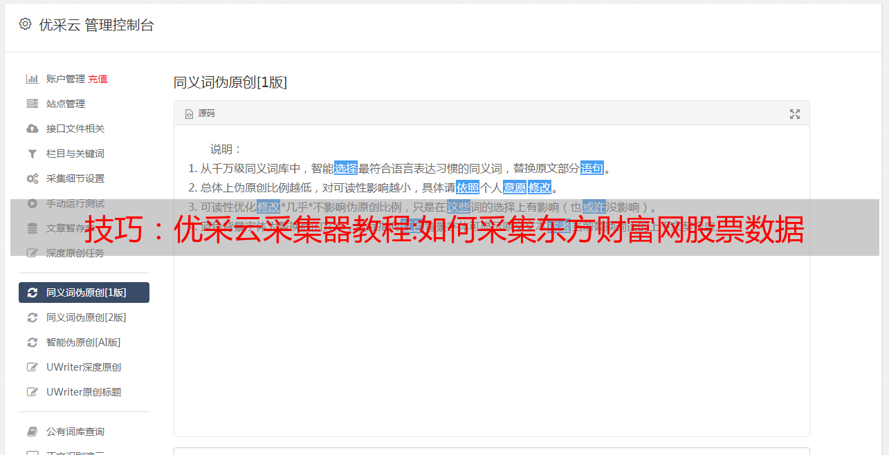 技巧:优采云采集器教程:如何采集东方财富网*敏*感*词*