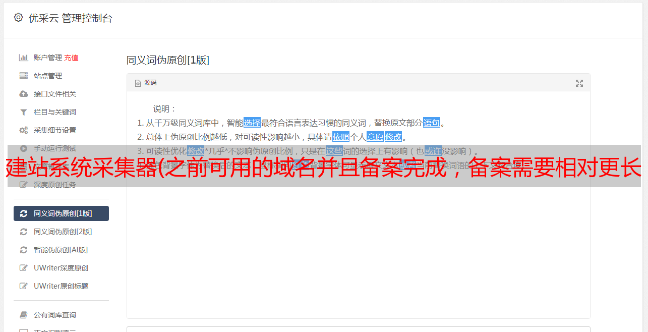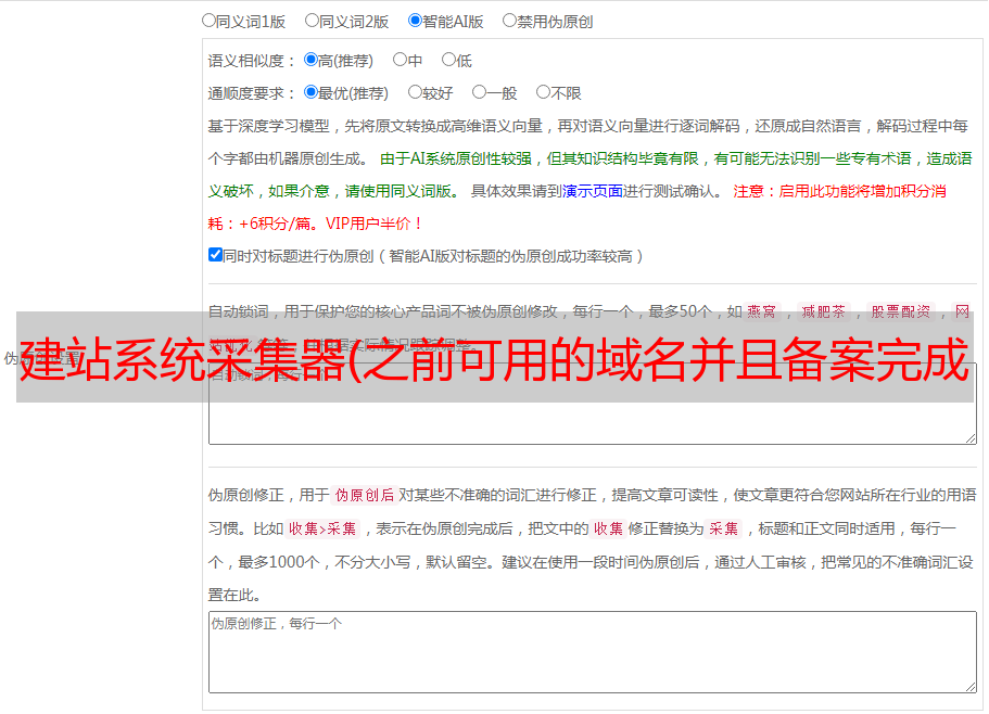 建站系统采集器(之前可用的域名并且备案完成,备案需要相对更长的时间 )