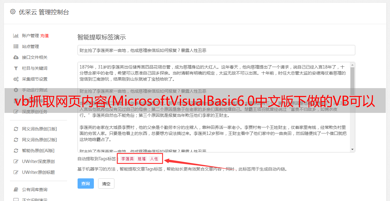 优采云 发布时间: 2021-10-19 16:10vb抓取网页内容(MicrosoftVisualBasic6.0中文版下做的VB可以抓取网页数据