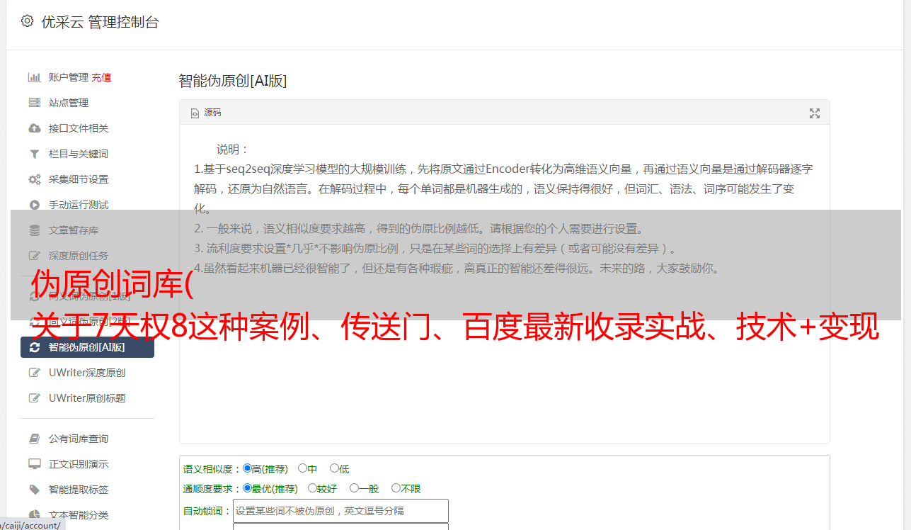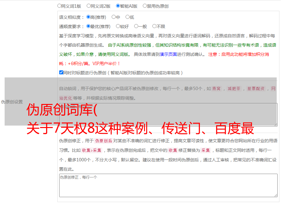 伪原创词库( 关于7天权8这种案例、传送门、百度最新收录实战、技术+变现完整剖析)