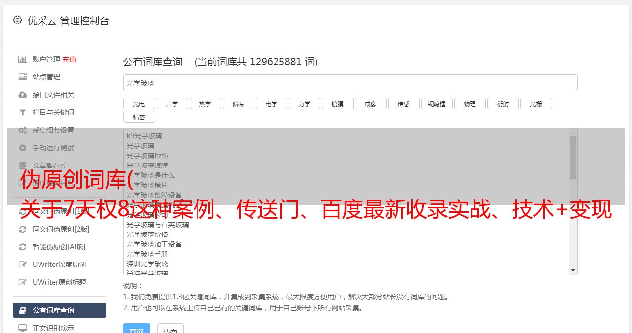 优采云 发布时间: 2021-10-19 22:16伪原创词库(