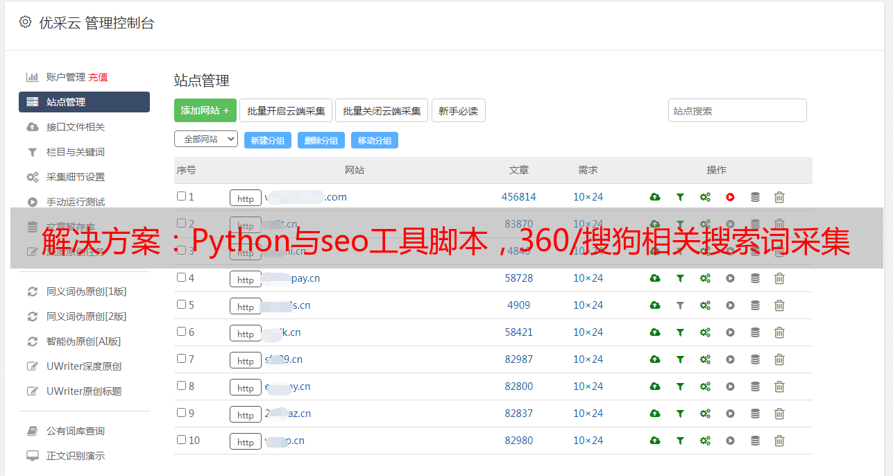 优采云 发布时间: 2020-12-11 08:14Python和seo工具脚本,与360 / Sogou相关的搜索词采集源代码参考