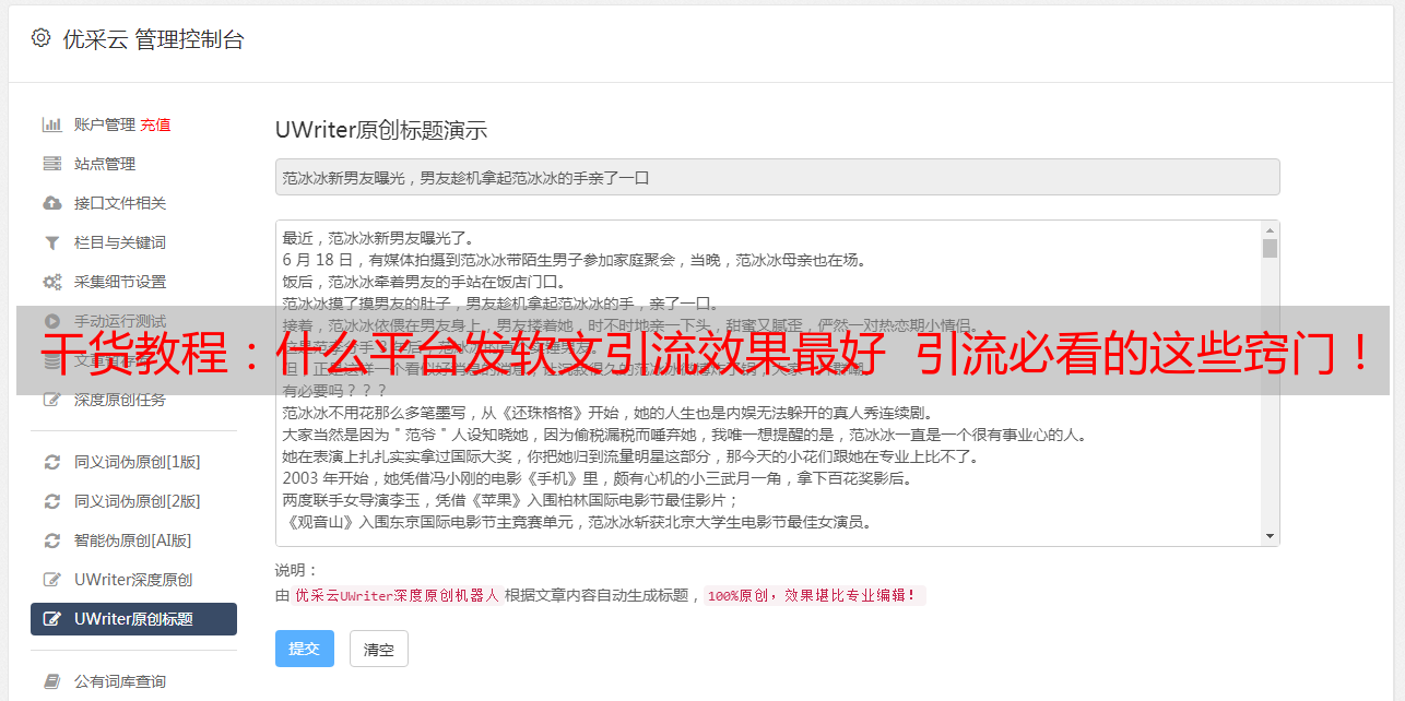 优采云 发布时间: 2020-12-13 08:09哪个平台发送软文的排水效果最佳?这些必不可少的排水技巧!