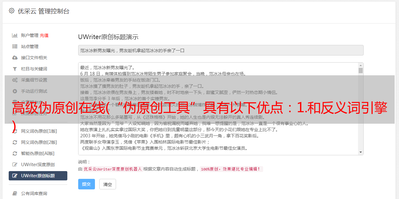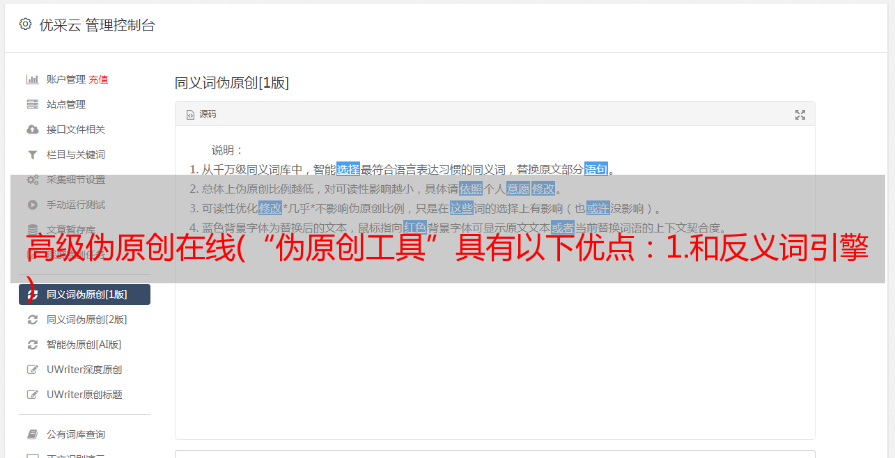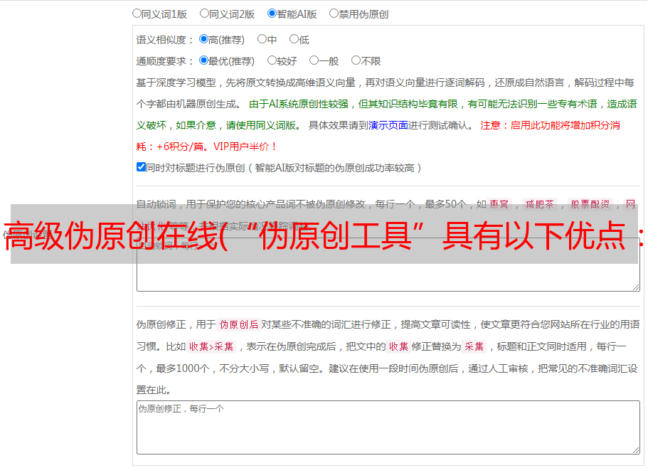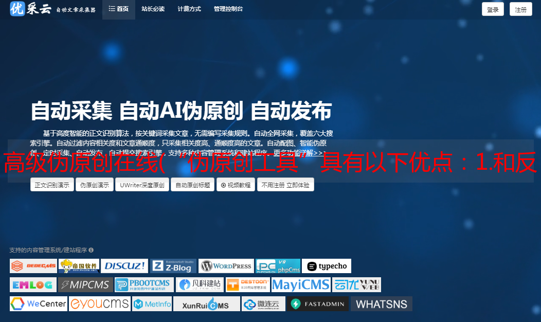 高级伪原创在线(“伪原创工具”具有以下优点:1.和反义词引擎 )