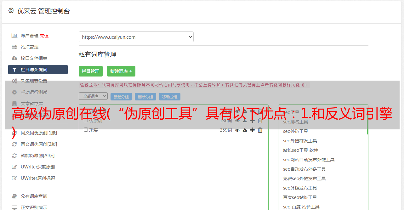 6、伪原创 内容支持导入导出为txt或html格式,方便客户迁移数据;