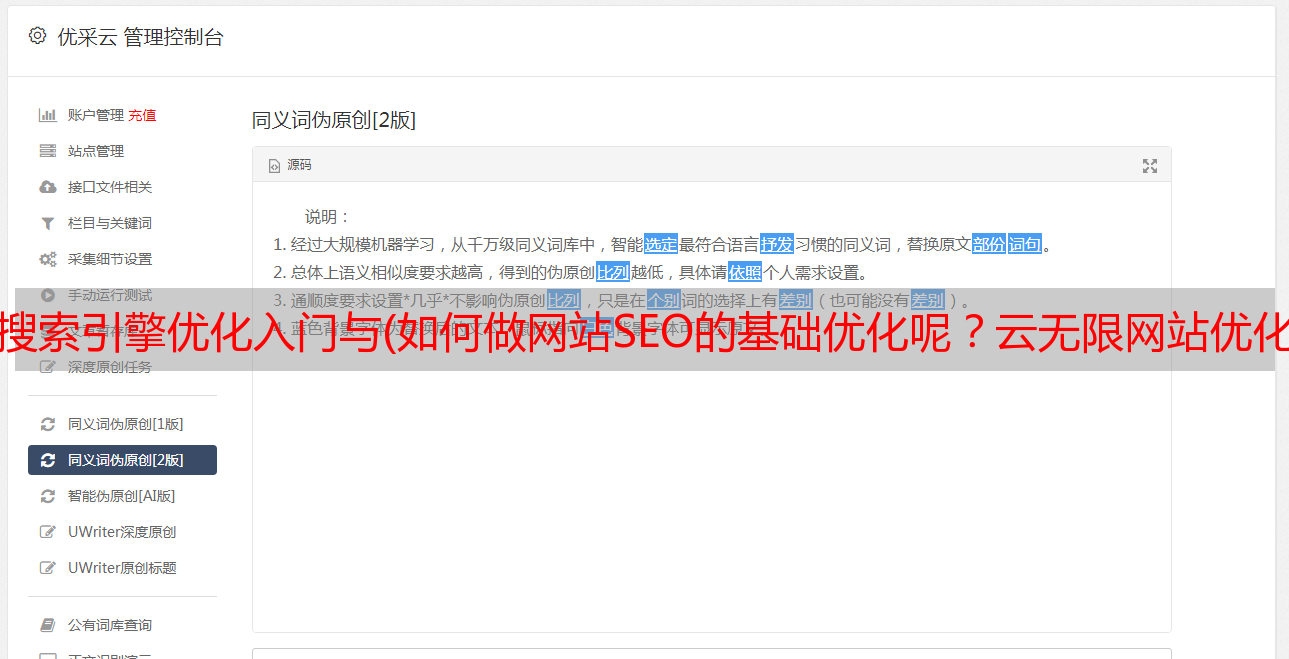 优采云 发布时间: 2021-10-20 12:08搜索引擎优化入门与(如何做网站SEO的基础优化呢?云无限网站优化