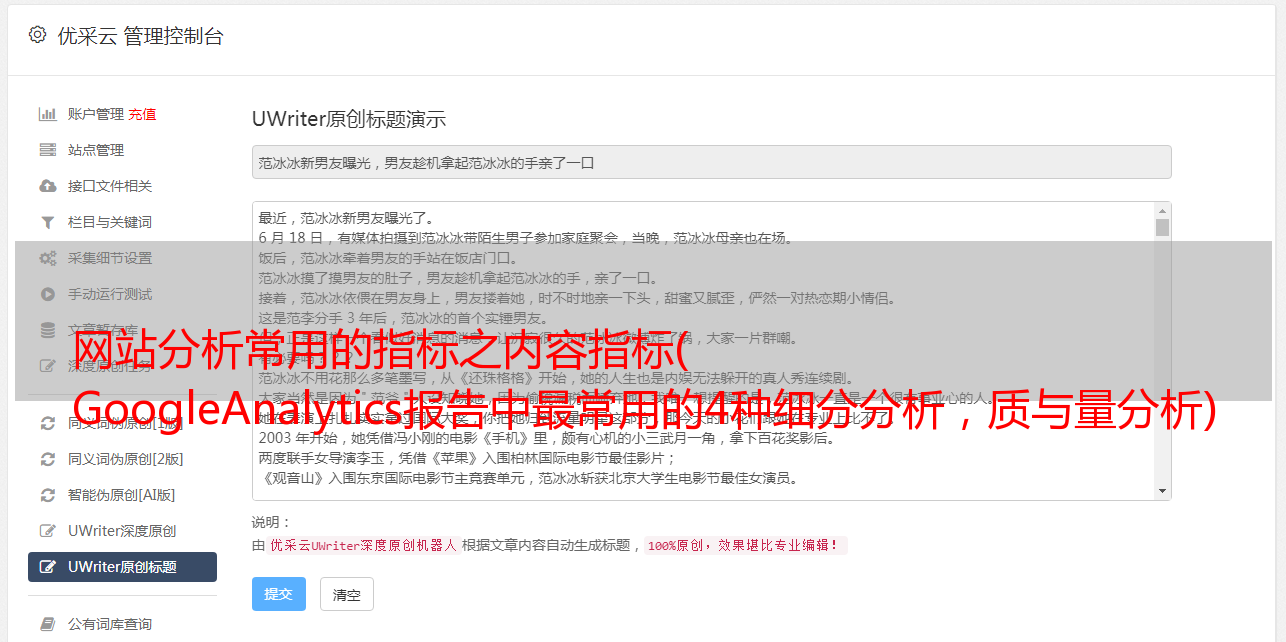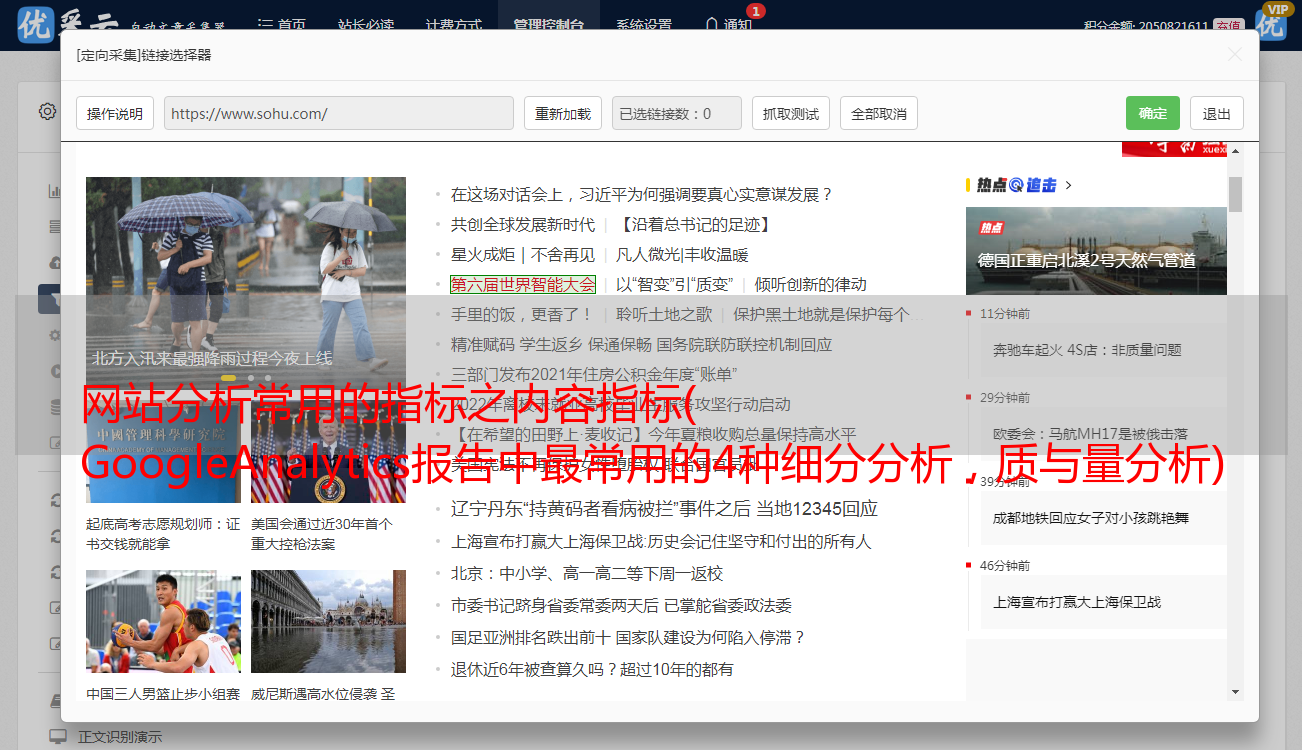 优采云 发布时间: 2021-10-20 14:01网站分析常用的指标之内容指标(
