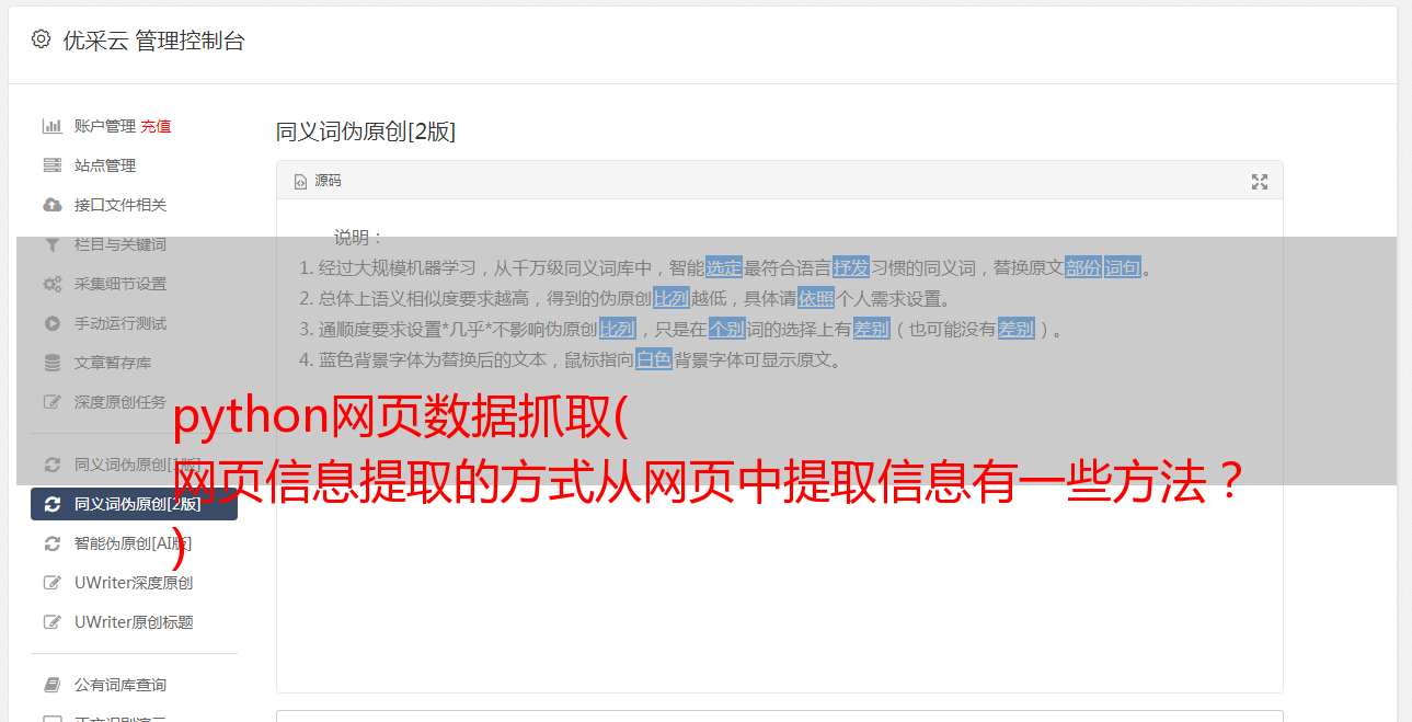 优采云 发布时间: 2021-10-20 15:08python网页数据抓取(