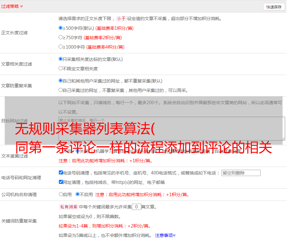 无规则采集器列表算法( 同第一条评论一样的流程添加到评论的相关指标)