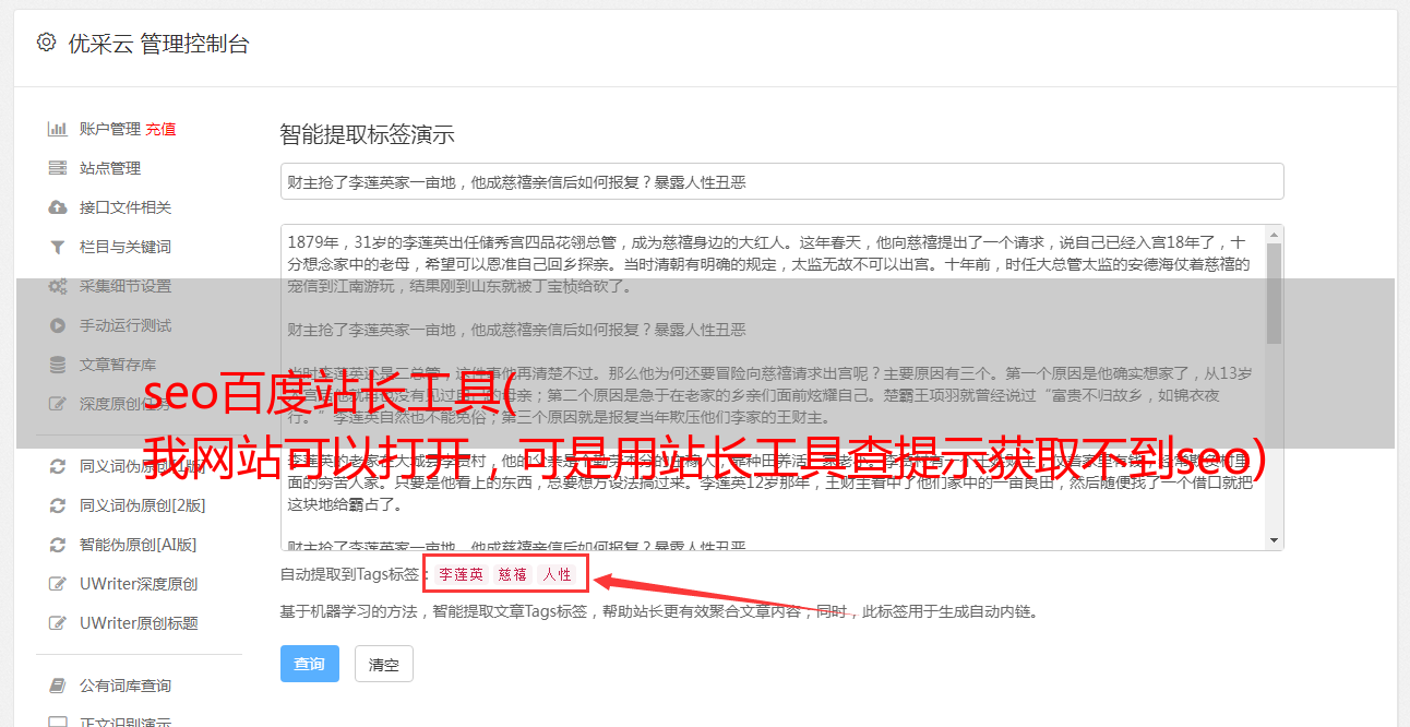seo百度站长工具( 我网站可以打开,可是用站长工具查提示获取不到seo)