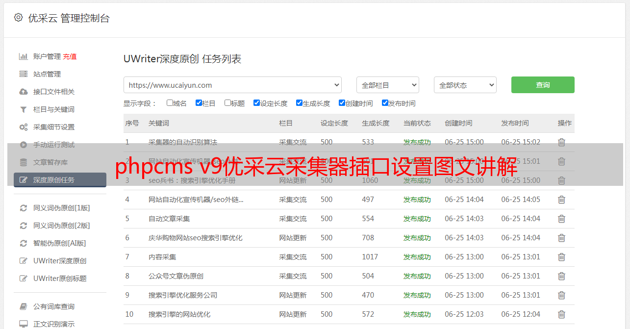 优采云 发布时间: 2020-06-27 08:02作为网编,我也是第一次使用优采云采集器,文中可能好多方面写得不一定太全面。前几天学习phpcms v9用优采云采集时也是无从下手,真所谓叫天天不应,问技术高手他人不理,百度搜了无数次,案例好多,或语焉不详或术语过分专业,折磨了几天总算有所悟,作为过来人,特写此文献给这些菜鸟参考。