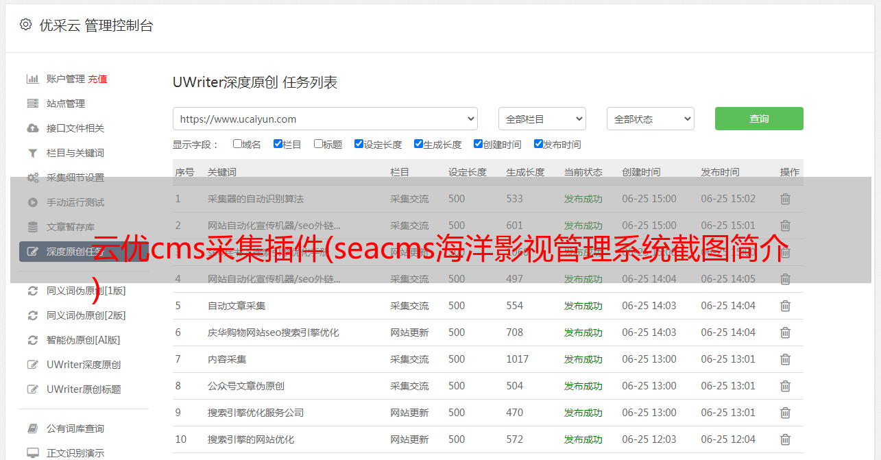 优采云 发布时间: 2021-10-21 10:21云优cms采集插件(seacms海洋影视管理系统截图简介