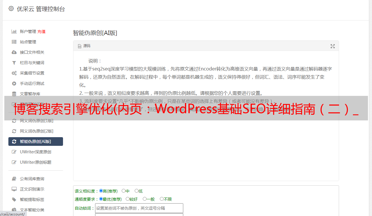 优采云 发布时间: 2021-10-21 15:03博客搜索引擎优化(内页:WordPress基础SEO详细指南(二)_光年论坛)