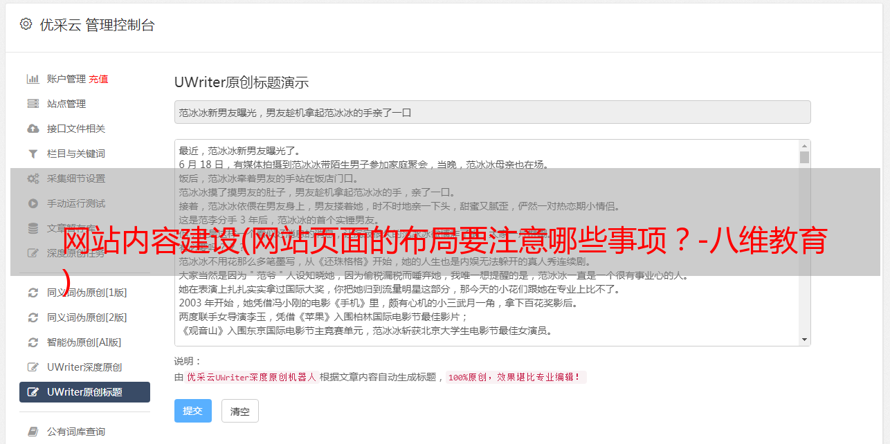优采云 发布时间: 2021-10-21 17:19网站内容建设(网站页面的布局要注意哪些事项?-八维教育