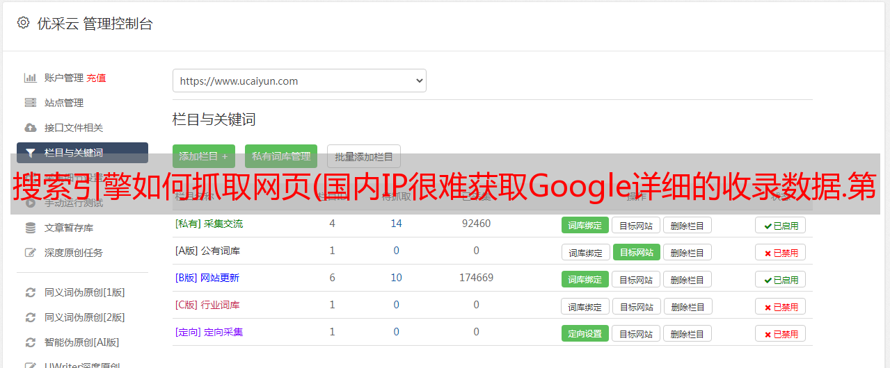 优采云 发布时间: 2021-10-21 18:04搜索引擎如何抓取网页(国内IP很难获取Google详细的收录数据.第一种谱