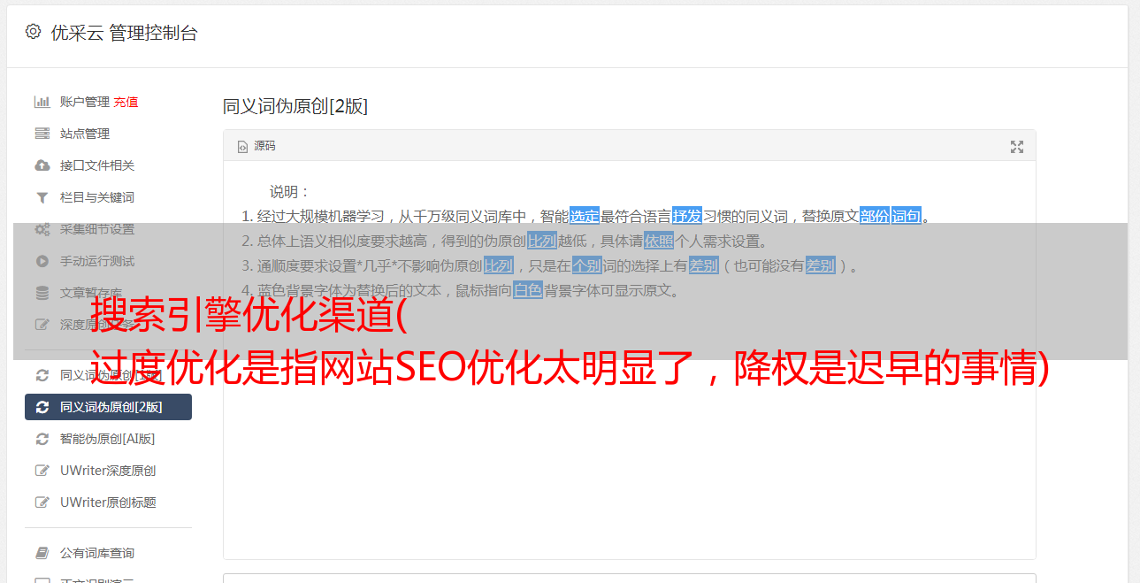 搜索引擎优化渠道( 过度优化是指网站SEO优化太明显了,降权是迟早的事情)
