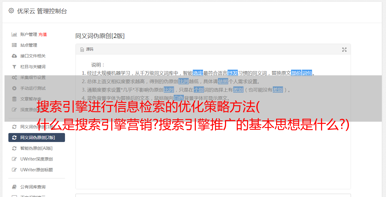 优采云 发布时间: 2021-10-21 21:17搜索引擎进行信息检索的优化策略方法(