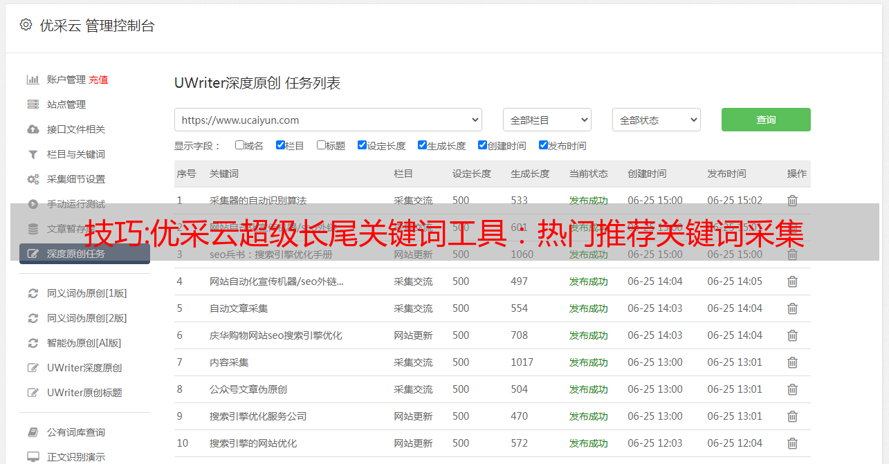 技巧:优采云超级长尾关键词工具:热门推荐关键词采集