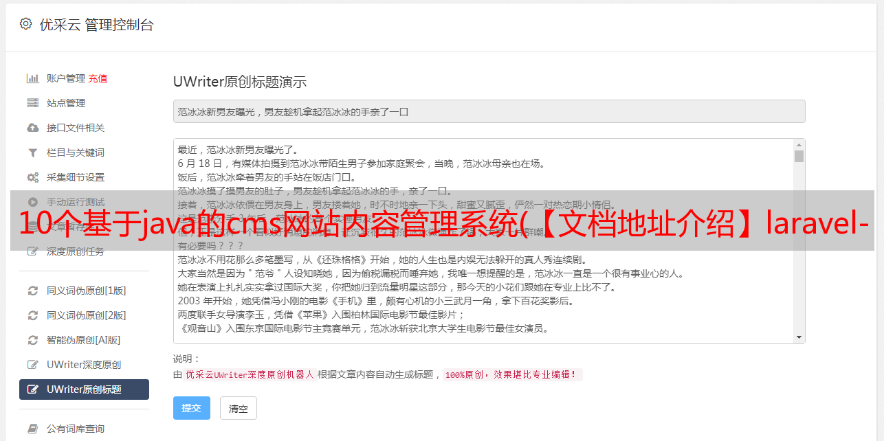优采云 发布时间: 2021-10-22 11:0410个基于java的cms网站内容管理系统(【文档地址介绍】laravel-wjfcms后台页面布局及JS)