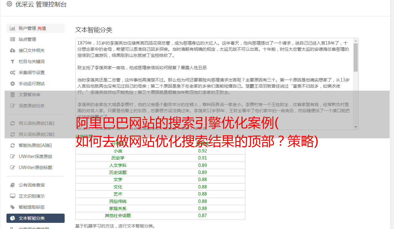 优采云 发布时间: 2021-10-22 19:06阿里巴巴网站的搜索引擎优化案例(