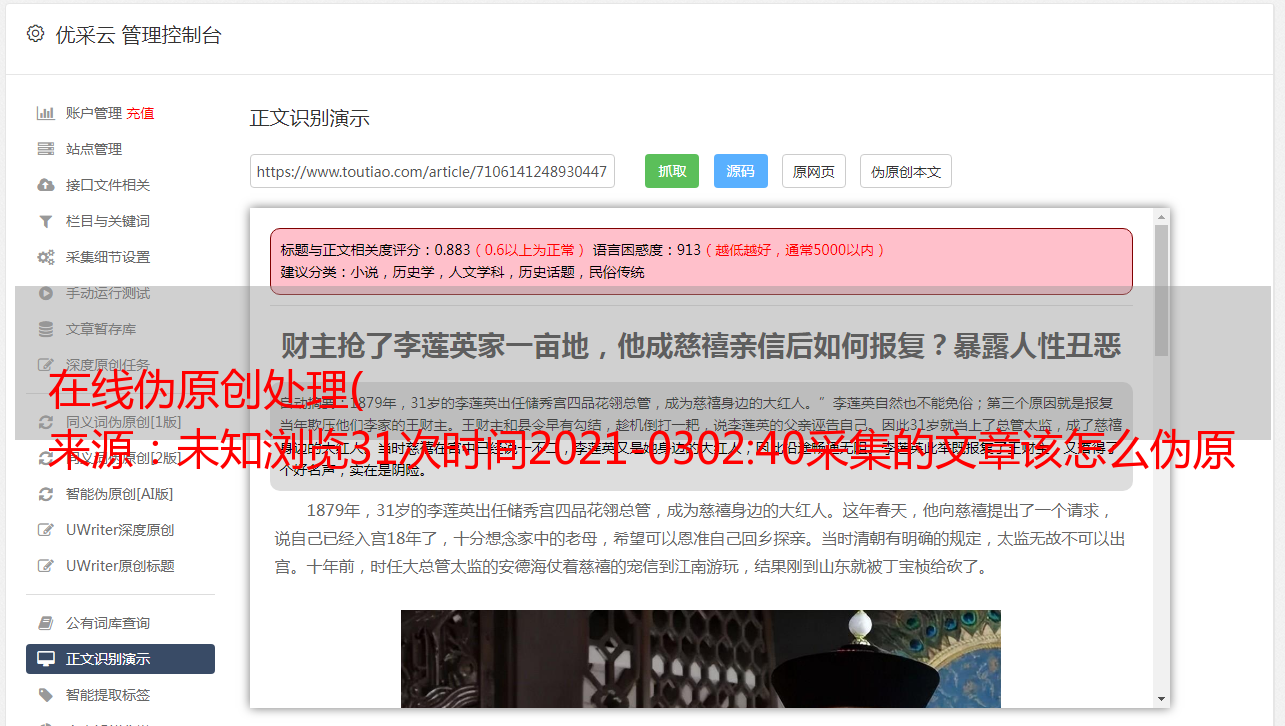 在线伪原创处理( 来源:未知浏览31次时间2021-0302:40采集的文章该怎么伪原创处理)