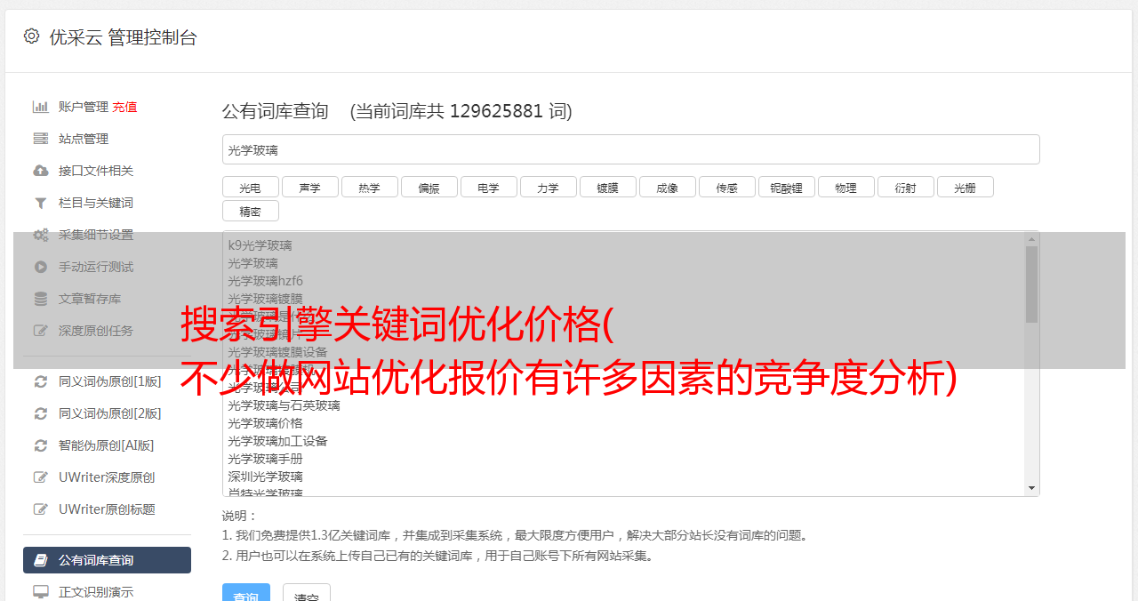 优采云 发布时间: 2021-10-23 22:01搜索引擎关键词优化价格(