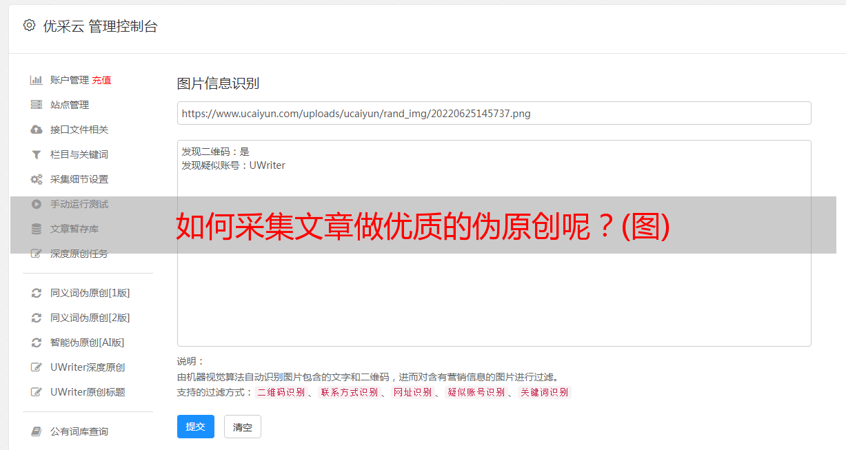 实际上,无论是原创文章还是采集,伪原创的文章都是为了满足用户的需求。我们写文章的起点应该是这个,它应该带有图片和文字。 ,可以使用户获得更好的阅读体验并符合高质量的特征文章。如果布局混乱,则文章的内容与文章的标题不匹配,并且该内容对用户不是很有用,并且无法很好地解决。用户的问题,即使文章 原创的程度很高,搜索引擎也会认为此文章是垃圾文章。相反,如果我们专注于用户的需求和体验,我们将进行高质量的伪原创文章,然后搜索引擎会将其视为高质量文章,从而加快了速度收录并提高网站的排名。