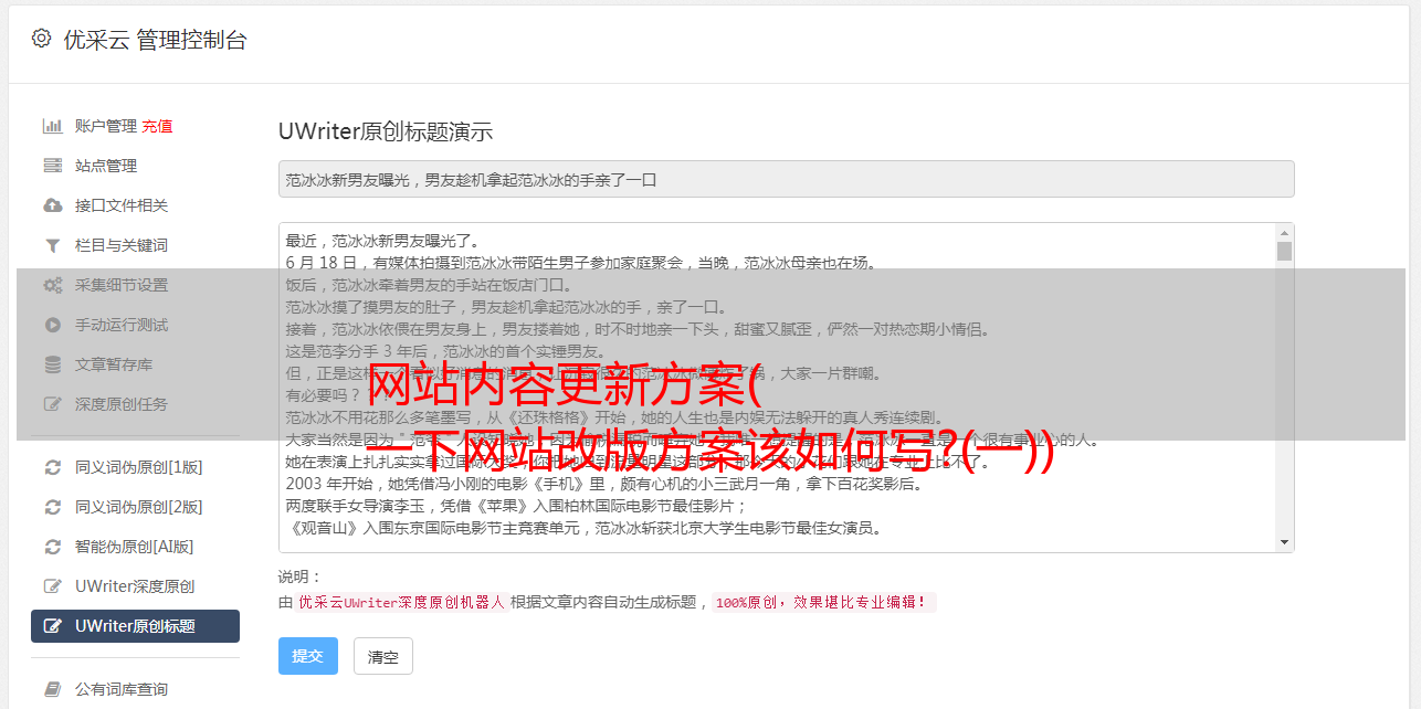 优采云 发布时间: 2021-10-24 00:17网站内容更新方案(