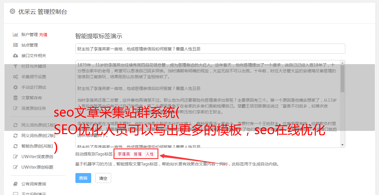 seo文章采集站群系统( SEO优化人员可以写出更多的模板,seo在线优化 )