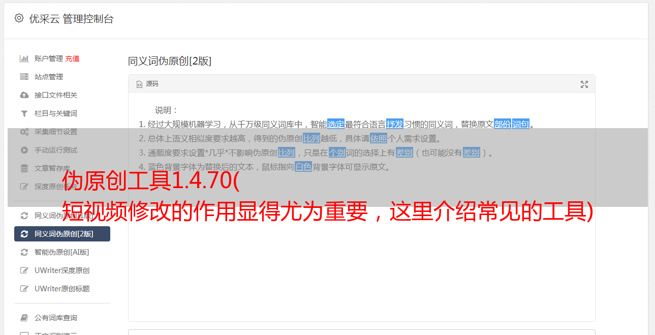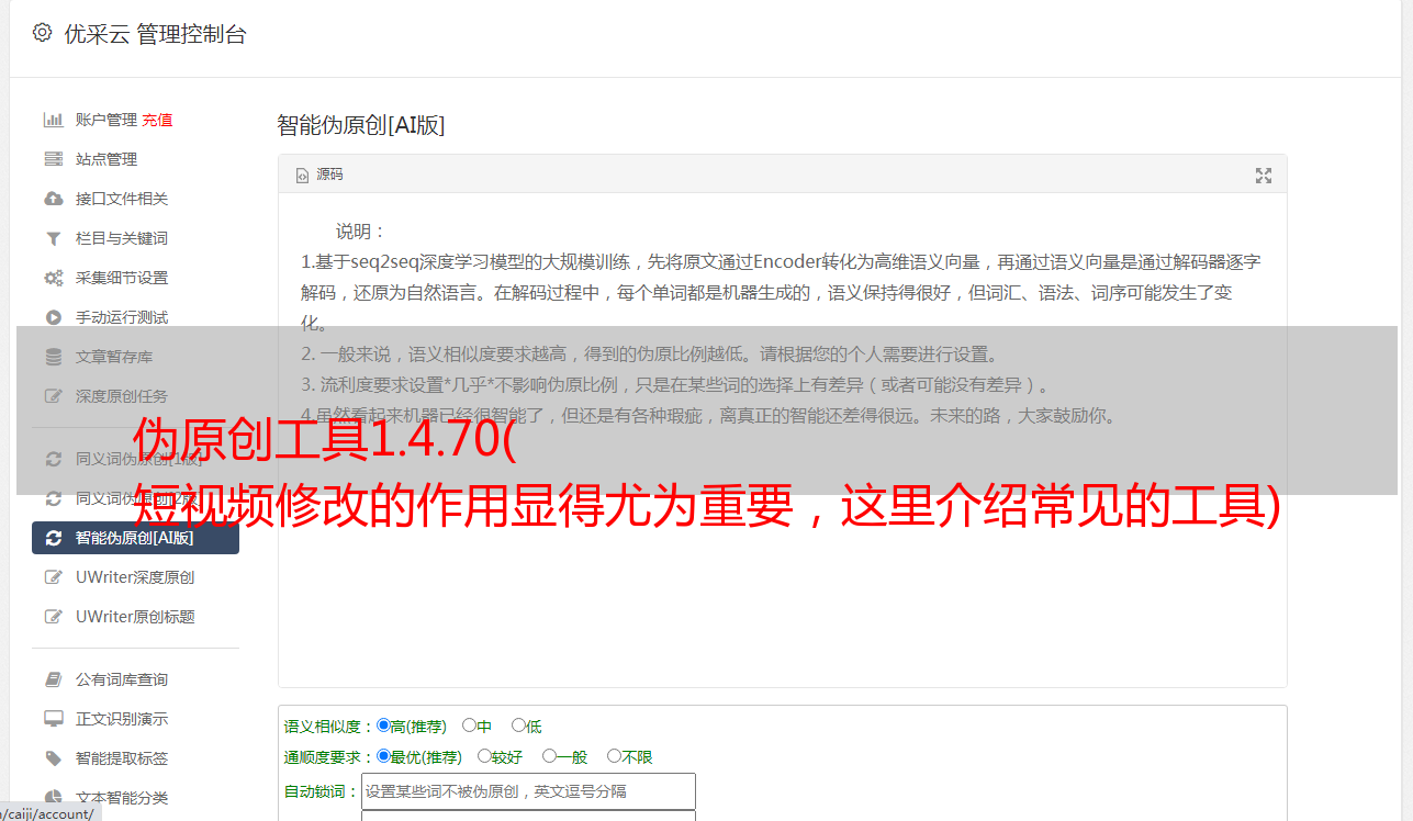伪原创工具1.4.70( 短视频修改的作用显得尤为重要,这里介绍常见的工具)