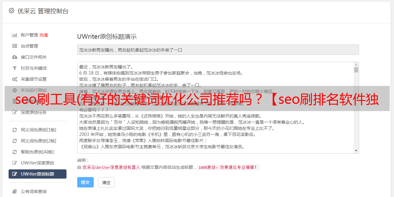 优采云 发布时间: 2021-10-24 16:14seo刷工具(有好的关键词优化公司推荐吗?【seo刷排名软件独特易速达】)