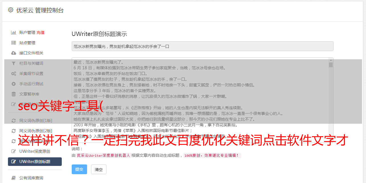seo关键字工具( 这样讲不信?一定扫完我此文百度优化关键词点击软件文字才可以是吧?)