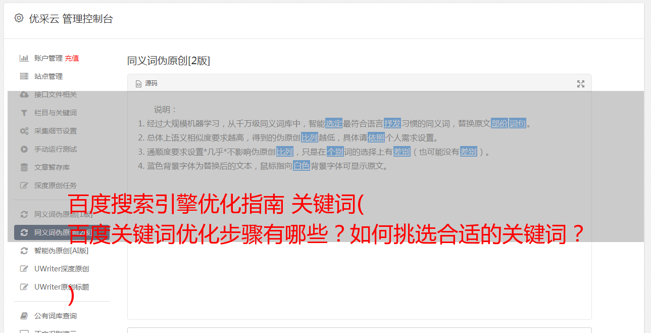 优采云 发布时间: 2021-10-24 22:06百度搜索引擎优化指南 关键词(