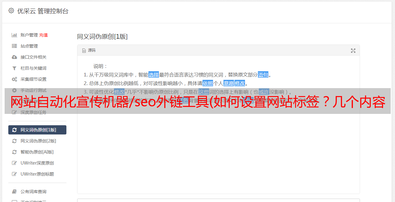 优采云 发布时间: 2021-10-24 22:16网站自动化宣传机器/seo外链工具(如何设置网站标签?几个内容是什么意思?简单理解