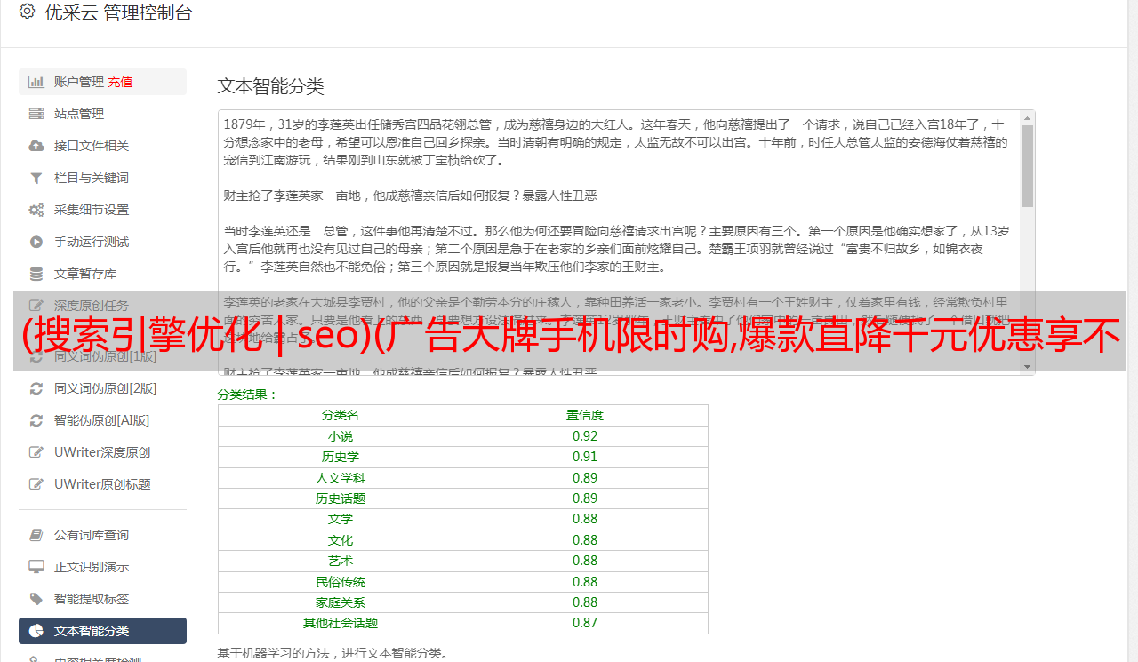 优采云 发布时间: 2021-10-24 23:11(搜索引擎优化 | seo)(广告大牌手机限时购,爆款直降千元优惠享不停!)