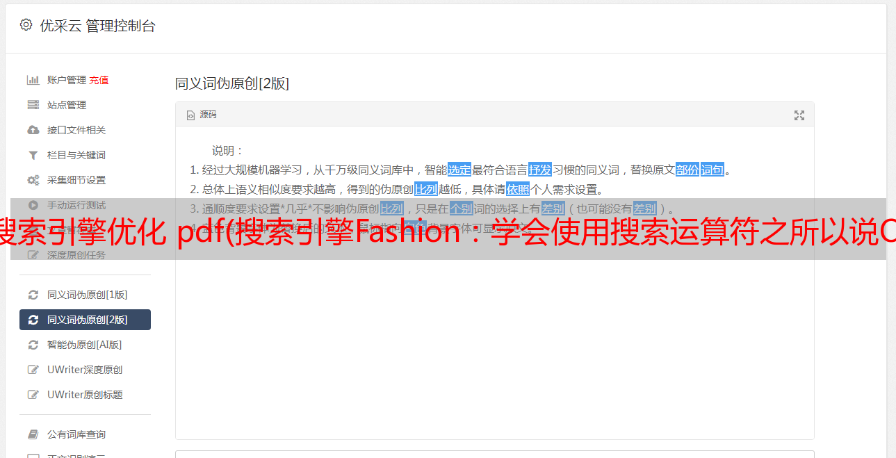 优采云 发布时间: 2021-10-25 06:11搜索引擎优化 pdf(搜索引擎Fashion:学会使用搜索运算符之所以说OldFashion,是因为